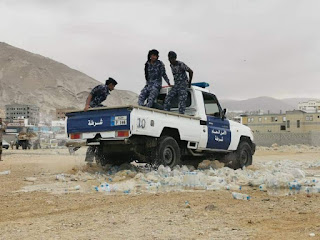 أتلفت الأجهزة الأمنية ممثلة بإدارة البحث الجنائي ومكتب وزارة الصناعة والتجارة بساحل حضرموت وبحضور مندوبي الأشغال العامة والنيابة العامة للمخالفات والمرور ظهر اليوم كمية من كراتين مياة صحية منتهية الصلاحية بمدينة المكلا.