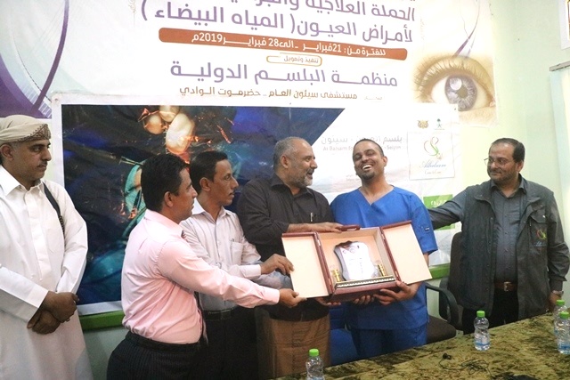 اختتام الحملة العلاجية والجراحية الأولى لأمراض العيون المجانية بمستشفى سيئون العام بإجراء اكثر من 150 عملية ومعاينة اكثر من 400 حالة