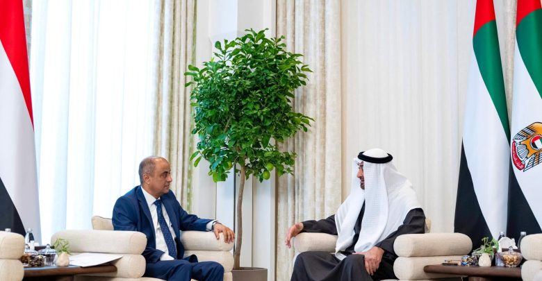 أبو ظبي.. الرئيس الإماراتي ورئيس الوزراء اليمني يناقشان جهود دعم الحكومة وتهديدات الملاحة الدولية