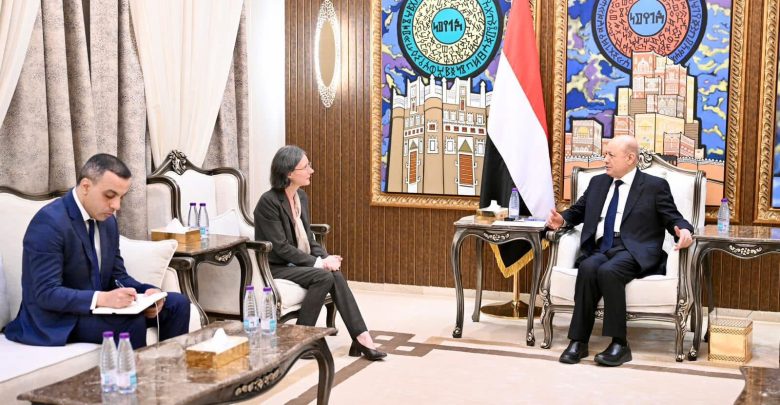 الرئيس العليمي يبحث مع سفيرة فرنسا دعم باريس لأمن الملاحة الدولية بالبحر الأحمر