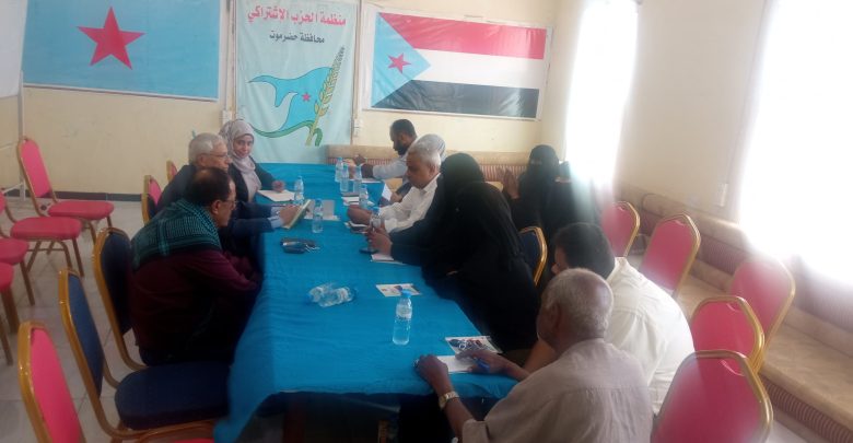 عُقد صباح اليوم الاثنين بمقر منظمة الحزب الاشتراكي بمحافظة حضرموت لقاءٌ جمع الفريق الرئاسي للتوجيه والرقابة بالمجلس الانتقالي الجنوبي برئاسة الأستاذ عبدالسلام قاسم مسعد، والعميد سليمان بن غانم، والأستاذة خلود علي علوي، مع أعضاء سكرتارية منظمة الحزب الاشتراكي بالمحافظة برئاسة الأستاذ محمد عبدالله الحامد، عضو اللجنة المركزية والسكرتير الأول للمنظمة.