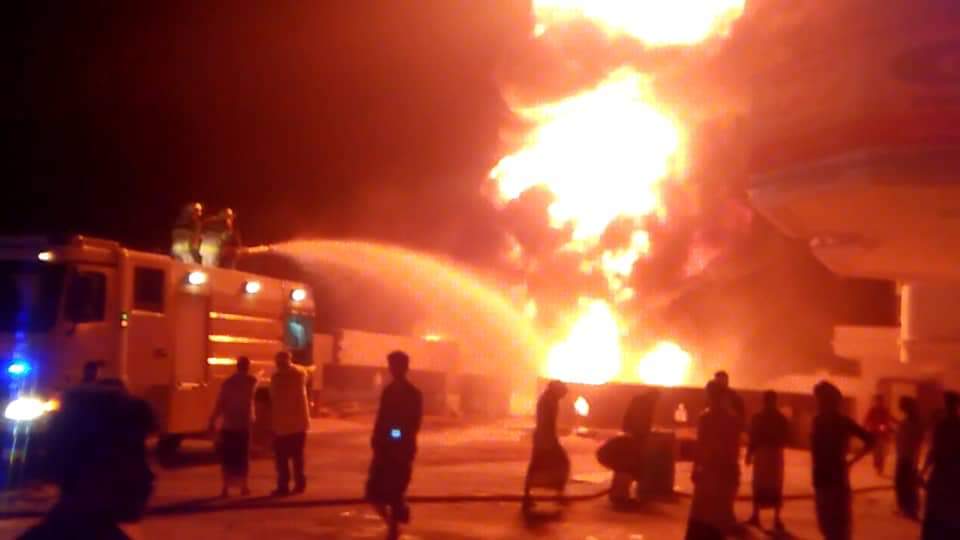 وتابع المصدر “ان سبب الحريق هو تماس كهربائي من الماطور ( مولد)  أثناء عملية تفريغ مادة الديزل،مؤكداً ان لا خسائر بشرية بينما تقدر الخسائر المادية بحوالي ثلاثين مليون ريال يمني”.