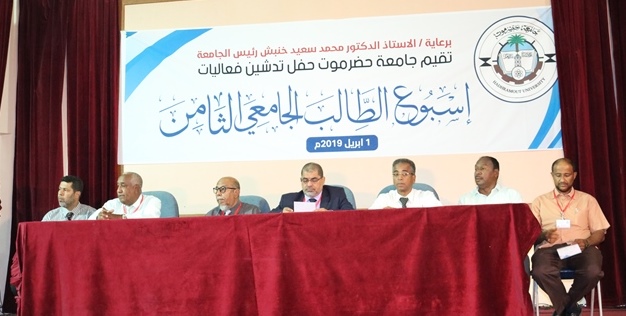 الطالب الجامعي الثامن بجامعة حضرموت وفي حفل الافتتاح الذي بدأ بآيات من