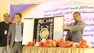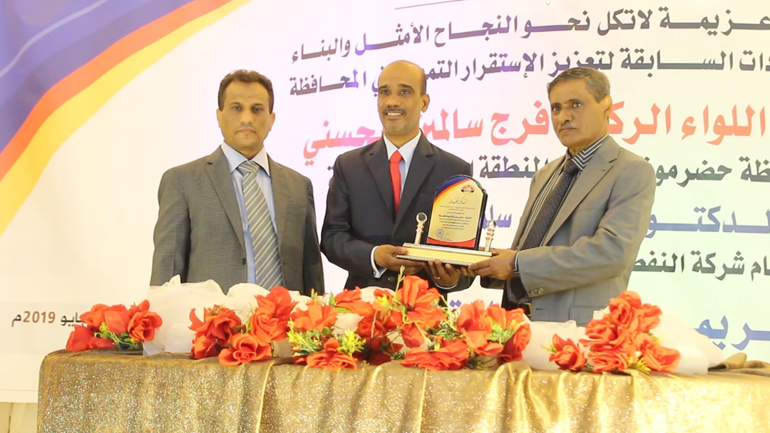 كرّم محافظ محافظة حضرموت قائد المنطقة العسكرية الثانية اللواء الركن فرج سالمين البحسني رواد شركة النفط اليمنية فرع ساحل حضرموت ومدراء الإدارات والعاملين بالشركة والجهات التي أسهمت في تخفيف حدة الأزمات التي مرت بها المحافظة خلال السنوات الماضية.