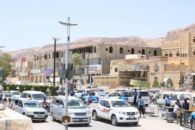 شوارعها الرئيسية ازدحام شديد للمركبات وتوزع رجال شرطة السير في تنظيم