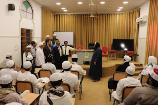 وكان في إستقبالهم رئيس هيئة علماء اليمن بحضرموت الوادي والصحراء الحبيب العلامة/ هاشم بن عبدالقادر الحبشي (الروشن)، ورئيس مجلس الأمناء بكليات الوسطية الشرعية أ/عبدالرقيب أحمد العطاس، والمدير التنفيذي للإدارة العامة لأربطة التربية الإسلامية الحبيب أ/ علي محضار المشهور، ونائب رئيس المجلس الأعلى لكليات الوسطية الشرعية أ. د/ علي مشهور الجنيد، ونائب عميد كلية الوسطية الشرعية د/ عبدالله عبدالقادر العيدروس، ونائب الموجه العام لأربطة التربية الإسلامية بمحافظة حضرموت  د/حسن عبدالله الهادي ، والأمين العام لكلية الوسطية الشرعية ورباط الإمام المهاجر أ/أحمد يحيى السري، والمدير التنفيذي لرباط المهاجر أ/ محمد السقاف، والطاقم الإداري بالكلية.