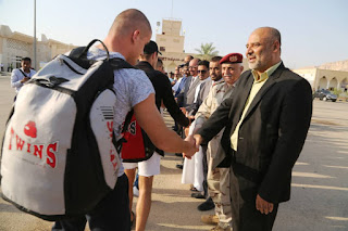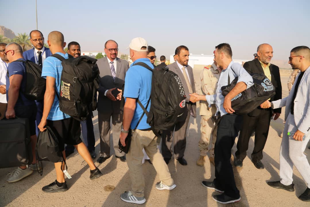شاهد صورا اولية لحظة وصول المشاركين في بطولة العالم للملاكمة العربية التي تحتضنها سيئون في الفترة ٢٨ – ٢٩ من الشهر الجاري في مطار سيئون الدولي والوكيل الكثيري على راس مستقبليهم