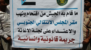 والذي قام به قائد القوة العسكرية هادي طميره وجنودة , حيث عبر المشاركون في الوقفة الذي انضم اليهم لاحقا طلاب المدارس عن ادانتهم واستنكارهم لهذة الجريمة الشنعاء ونهب اغاثة في وضح النهار .