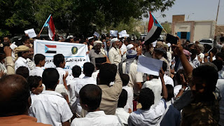 بالصور ابناء مديرية القطن ينفذون وقفة احتجاجية سلمية تطالب برحيل القوات العسكرية وإعادة مانهب من مقر الانتقالي