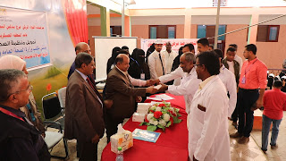 حضر التوزيع مدير مكتب منظمة الصحة العالمية بحضرموت الدكتور علي جعول ومدير برنامج الترصد الوبائي والتدخل السريع بمكتب منظمة الصحه العالميه عدن الدكتورة لينا خنبري ورئيس فريق المنظمه الزائر للمحافظه من مكتب عدن الدكتور باسل عبادي وعدد من المسؤولين بقطاع الصحة بساحل حضرموت.