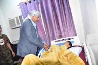 وخلال الزيارة، أطمأن على صحة الجريح البطل باحمدان، حاثاً الأطباء المعالجين على إيلائه العناية الطبية اللازمة، كما وجه رئيس دائرة الشهداء والجرحى في الأمانة العامة لهيئة رئاسة المجلس، بمتابعة إجراءات نقله إلى الخارج لاستكمال العلاج.