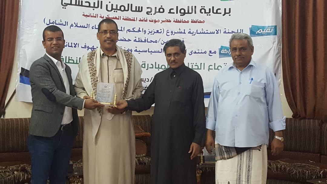 جاء ذلك خلال اجتماع ختامي اقامته اللجنة الاستشارية لمشروع “تقرير الحكم المحلي وبناء السلام الشامل” في اليمن محافظة حضرموت بالشراكة مع منتدى التنمية السياسية ومنظمة بيرجهوف الألمانية.