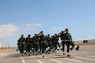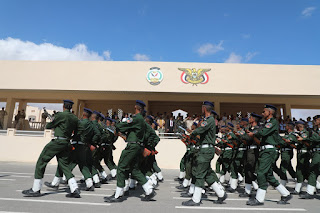 وحضر المحافظ عقب ذلك، العرض العسكري المهيب الذي نفّذه طلاب كلية الشرطة بساحة عروض الكلية، أظهروا خلاله انضباطاً عالياً، وأبرزوا إلتزاماً ووعياً نتاج ما تعلمّوه في العام الدراسي الأول، وأدّوا العرض على ايقاعات الموسيقى العسكرية وبروح معنوية عالية، وبعزّة وشموخ، مؤكدين في شعارات أطلقوها بصوت قوي وشجاع ، دفاعهم عن تراب حضرموت والوطن ، ومردّدين “كلنا فداء لحضرموت والوطن” و”العسكرية شرف وفداء وتضحية” ، وعلى الأعلى منهم حديث شريف “عينان لا تمسهما النار، عيناً بكت من خشية الله، وعيناً باتت تحرس في سبيل الله” .
