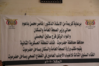 كرّم محافظ محافظة حضرموت قائد المنطقة العسكرية الثانية اللواء الركن فرج سالمين البحسني اليوم الأطباء الأجانب العاملين بالقطاع الصحي بمديريات ساحل حضرموت ضمن فعاليات اللقاء السنوي الثالث للأطباء الأجانب العاملين بالمحافظة.