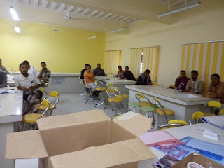 وتم توزيع المشاركين على 22 قاعة تدريببة منها قاعات خاصة بالذكور وقاعات خاصة بالاناث في جميع التخصصات ويتلقون محاضرات عن التعليم النشط واهمية الوسائل التعليمية واساليب التقويم .