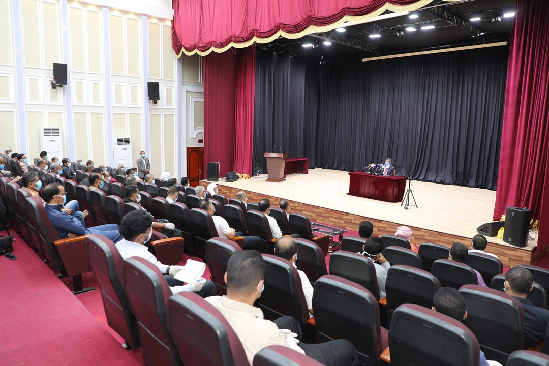 واستعرض المحافظ خلال اللقاء الإجراءات المتبعة بالمحافظة لمجابهة فيروس كورونا، والمهام المنوطة بالجهات المدنية والعسكرية بالمحافظة، مشدداً على أهمية قيام كل جهة بدورها على أكمل وجه والاستعداد لتنفيذ أي توجيهات ومهام أخرى في حال تطور الموقف وأهمية تدخل القطاع الخاص ورجال الأعمال لمساعدة أهلهم ومجتمعهم في اطار المسؤولية الوطنية وإشراك الجميع في كافة المهام والأنشطة الهادفة لمواجهة فيروس كورونا والتوعية بطرق انتقاله والوقاية منه.