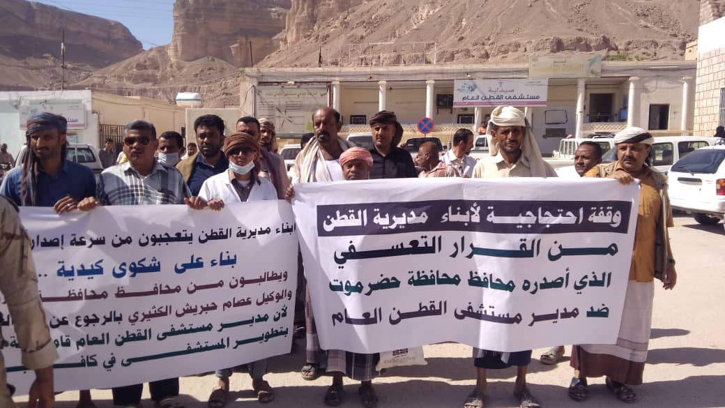 وكان محافظ حضرموت اللواء الركن فرج البحسني قد اصدر قرار بايقاف العي عن العمل واحالته للتحقيق وتوجيه مدير مكتب الصحة بالوادي والصحراء بتكليف من يراه مناسب للقيام بمهام ادارة المستشفى حتى يستكمل التحقيق .