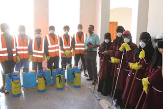 وقام عمال النظافة والخدمات التابعين لمكتب جولدن كلين سرفس، بتعقيم جميع مكاتب المجمع الحكومي ضمن الإجراءات الوقائية لمنع تفشي الوباء القاتل الذي فتك بأغلب دول العالم.