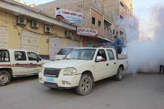 المرحلة الثالثة: عملية الرش الضبابي للأحياء السكنية والبؤر التي هي مصدر تكاثر البعوض، وكذلك ردم وشفط  مصادر توالد وتكاثر البعوض، بالتنسيق مع محور الملاريا بمكتب وزارة الصحة العامة والسكان بساحل حضرموت، وكذلك مشاركة اللجان المجتمعية بالأحياء السكنية والمتطوعين.