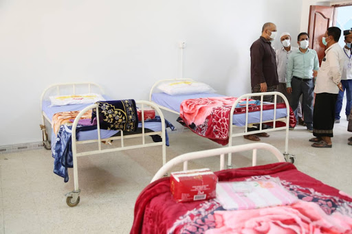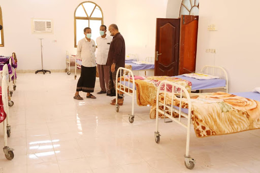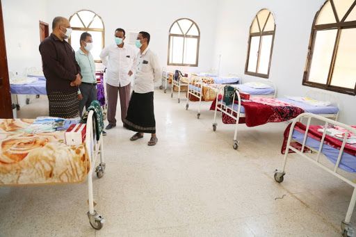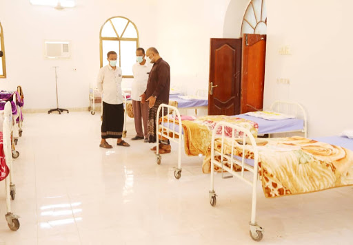 و استمع الوكيل الكثيري و مدير عام مكتب الصحة الدكتور هاني العمودي من رئيس هيئة مستشفى سيئون الدكتور انيس عيديد الى شرح عن المركز الذي تم تجهيزه ب60 سرير موزعة في خمس غرف مجهزة بوسائل التكييف .