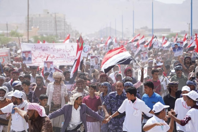تظاهر الالاف من ابناء محافظة شبوة الذين توافدو من كافة مديرياتها في العاصمة عتق