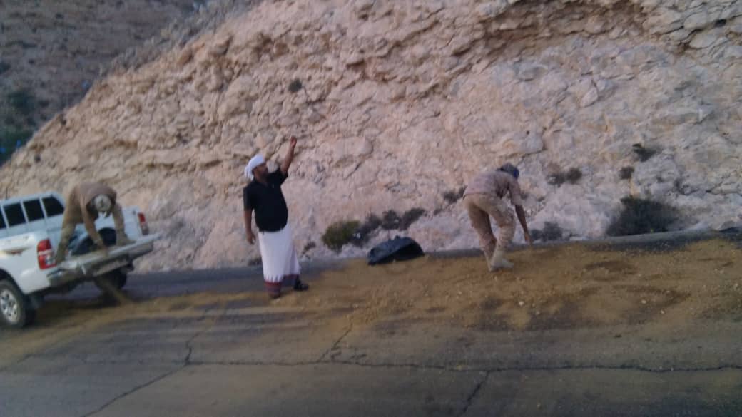 ضمن سلسلة الاعمال الانسانية التي يقوم بها معسكر الادواس (النخبة الحضرمية) شبة يوميا بسبب وعرة الطريق والمنعطفات الخطيرة في الخط الرابط بين ساحل ووادي حضرموت_