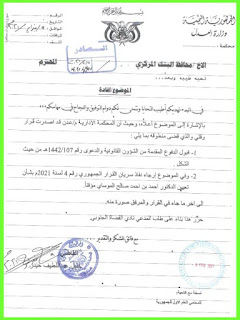 طالعتنا مذكرة رقم 2.ص.ت محررة بتاريخ 24/ 2/ 2021م وصادرة من د. أحمد أحمد صالح الموساي المرجئ نفاذ سريان قرار تعيينه نائباً عاماً للجمهورية بحسب قرار المحكمة الادارية الابتدائية بالعاصمة عدن ، والتي دعى فيها رؤساء النيابات العامة والنوعية بالمحافظات الى مباشرة اعمالهم وفتح أبواب النيابات.