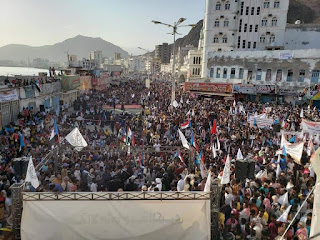 وشوهد منذ عصر اليوم سيول بشرية تصل تباعا الى ساحة الحرية بالمكلا من الساحل والوادي جميعهم علي قلب راجل واحد مع  المحافظ البحسني في التاكيد والتاييد القرار التاريخي تجمعهم المحبه والاخلاص لحضرموت الارض والانسان مرددين شعارات حماسية ووطنية حاملين اعلام الجنوب وسط حضور اعلامي كبير.