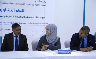 كما تحدث خلال اللقاء مدير عام مكتب الصحة العامة والسكان بساحل حضرموت الدكتور رياض حبور الجريري ومنسقة كتلة الصحة في المحافظات الجنوبية والشرقية الدكتورة منال باعييس بكلمات أوضحوا خلالها بأن هذا اللقاء يقام تحت شعار “تنسيق الجهود بين شركاء التنمية الصحية والسلطات المحلية الطريق الى تحقيق افضل النتائج على الواقع”، ويهدف الى وضع اللبنات الأساسية للتنسيق للعمل المشترك بين الاطراف المعنية لدعم مشاريع الصحة في محافظة حضرموت خصوصا واقليم حضرموت بشكل عام.