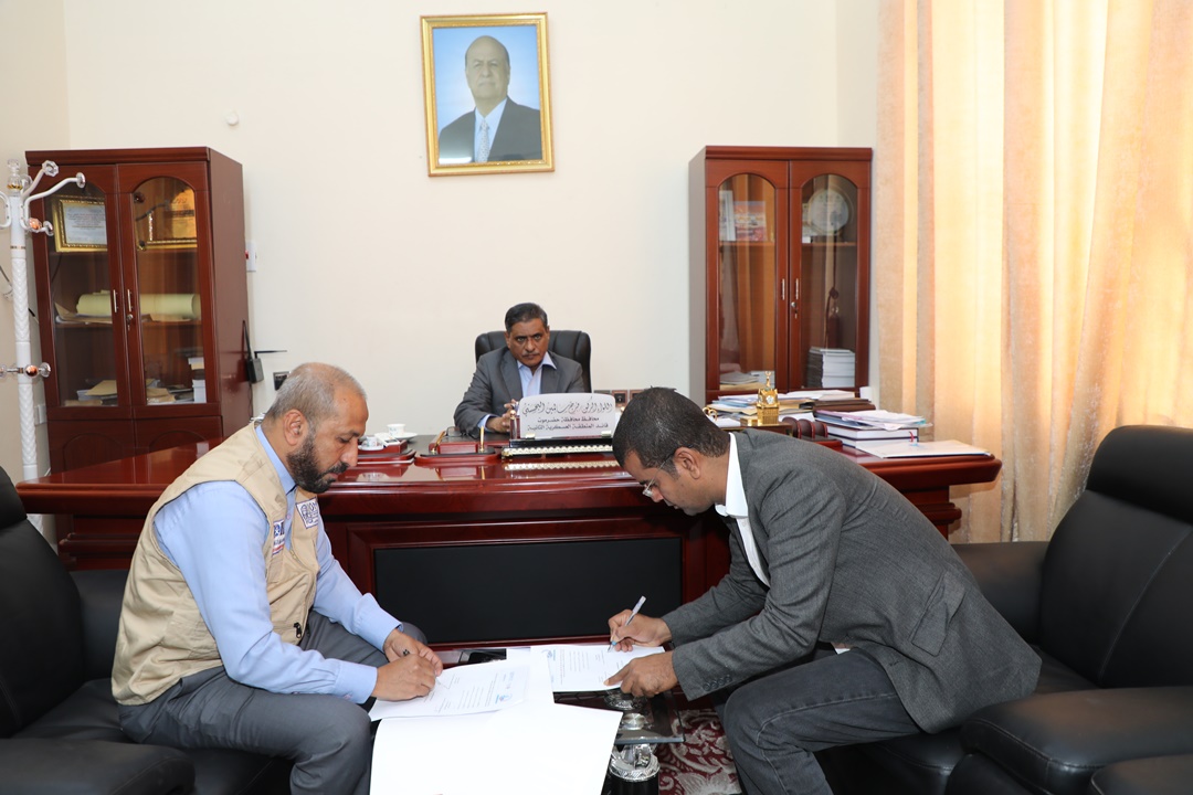 حضر التوقيع مهندس مشروع النظافة في حضرموت التابع لمنظمة الهجرة الدولية المهندس نواف النمري ولوجستي مشروع النظافة المهندس سالم ياسر بافرج.